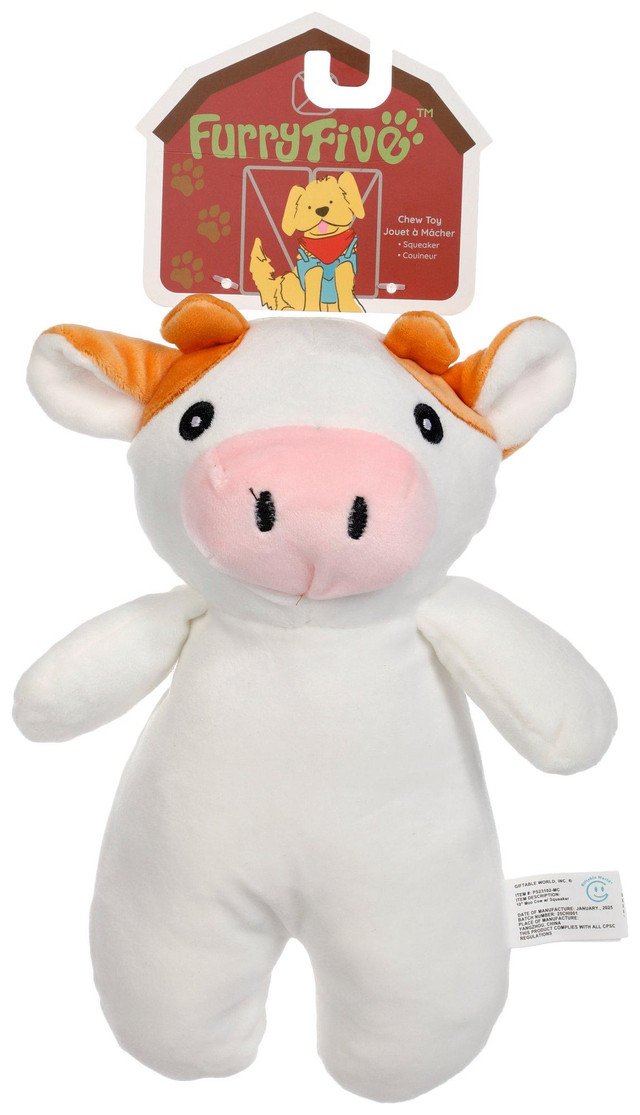 Bring home a barnyard buddy your pup will love with the 10'' Moo Cow Dog Toy! Made from soft, plush fabric and designed with an adorable cow face, this toy is perfect for snuggling, tossing, and light chewing. It features a built-in squeaker to keep your dog entertained and engaged during play.