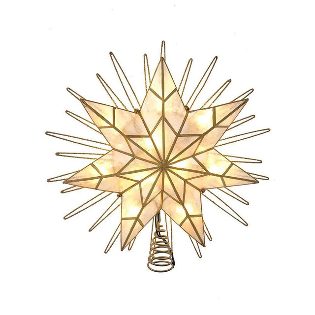 Top your tree with elegance using the Kurt Adler 14 in. 10-Light LED Gold Glittered Star Tree Topper. Featuring a dazzling 7-point design coated in shimmering gold glitter, this radiant star adds festive sparkle to your holiday décor. Warm LED lights create a glowing finish, blending traditional charm with modern brilliance. Perfect for adding glamour and a majestic touch to your Christmas tree. Measures 15 in. x 2.56 in. x 14 in.