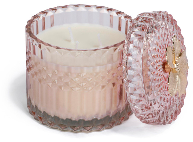 Brighten your space with the sweet scent of Flower Currant. This 12 oz Enchanté candle comes in a beautifully faceted pink glass jar with a matching textured lid. The creamy white wax adds a soft, elegant touch and perfect for gifting or elevating your home decor.