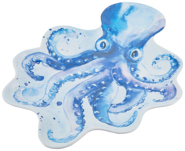 Serve with a splash of whimsy using this plate from Coastal Home. Shaped like a giant octopus with watercolor design, this plate makes a bold statement on any table. Perfect for seafood dishes, nautical-themed parties, or collectors who love unique coastal decor. Measures approximately 16 in L x 11 in W.