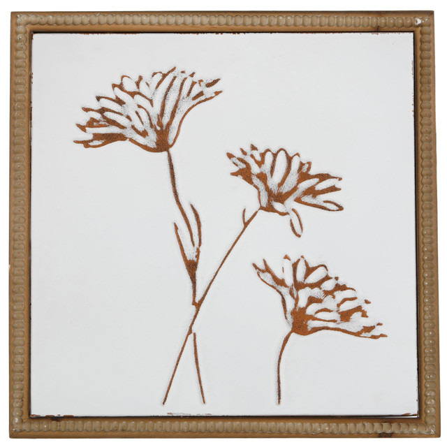 Elevate your wall decor with this metal frame picture featuring elegant bronze flowers. The rich tones and sculpted details create a timeless look that adds warmth and sophistication to any room. Perfect for living spaces, hallways, or bedrooms.