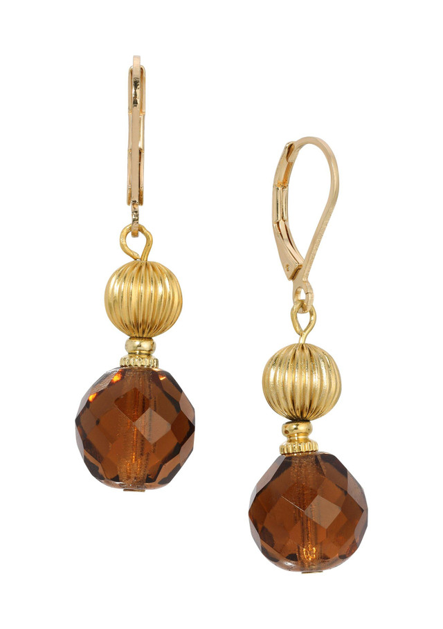 These chic earrings feature intricate corrugated texture glass smoke topaz crystals and 14K gold-dipped beads, secured with a lever back closure. The combination of beads and crystals adds depth and character, while the design exudes feminine warmth. Perfect for every occasion, these earrings offer a unique and elegant touch to any outfit. Length 1.65 in., width 13mm.
