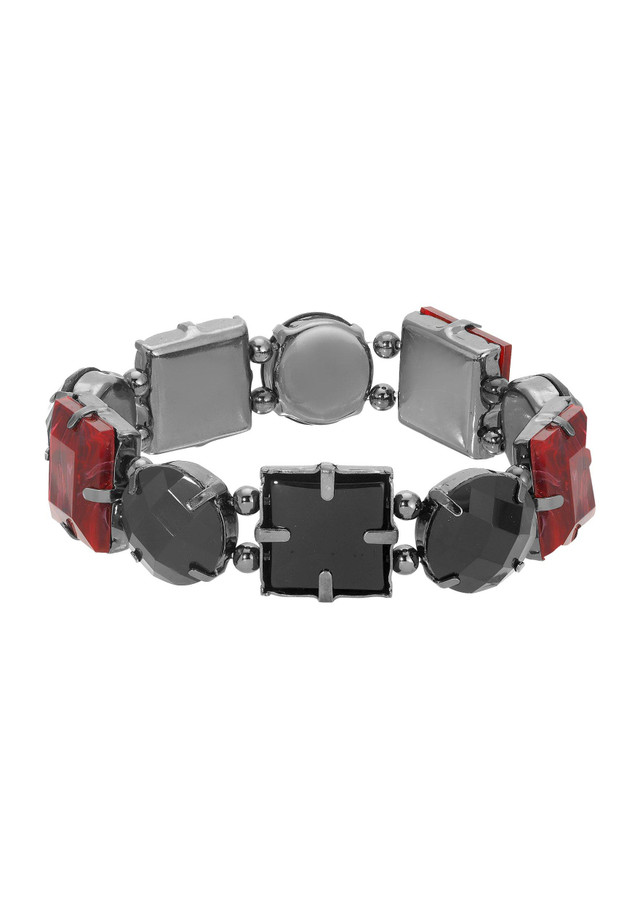 This stretch bracelet showcases a striking combination of round and square stones. The multi-colored stones contrast beautifully, creating a modern yet sophisticated look. Unique and versatile, this bracelet effortlessly enhances any outfit, making it a perfect accessory for both casual and formal occasions. Add a touch of elegance and contemporary flair to your wardrobe with this eye-catching piece. Length 7 in. Width 16mm.