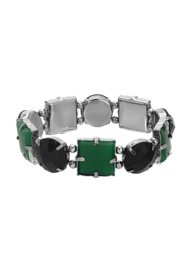 This stretch bracelet showcases a striking combination of round and square stones. The multi-colored stones contrast beautifully, creating a modern yet sophisticated look. Unique and versatile, this bracelet effortlessly enhances any outfit, making it a perfect accessory for both casual and formal occasions. Add a touch of elegance and contemporary flair to your wardrobe with this eye-catching piece. Length 7 in. Width 16mm.