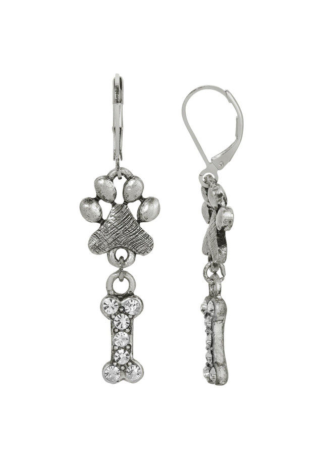 Celebrate your love for your furry friend with these playful earrings. Featuring a lever back closure for secure wear, these earrings showcase an intricate paw design with a crystal-accented bone. Their whimsical and lovable design makes them perfect for every occasion, adding a touch of charm and fun to your look. Whether dressing up or adding a playful touch to your everyday attire, these earrings are a delightful way to show off your affection for your pet. Length 1 in., width 14mm..