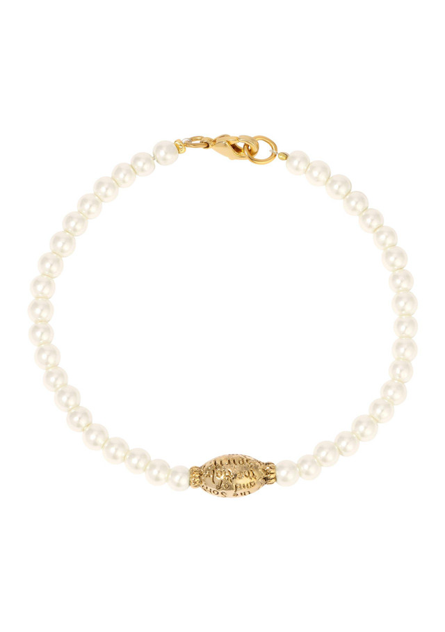 This smooth, round beaded bracelet features a striking 14k gold-dipped bead etched with the meaningful Sign of the Cross. The subtle, polished beads are strung together for a refined yet simple design, making it a perfect addition to any collection. The gold-dipped bead adds a touch of warmth and faith to this understated piece. Length 7.5 in. Width 12mm.