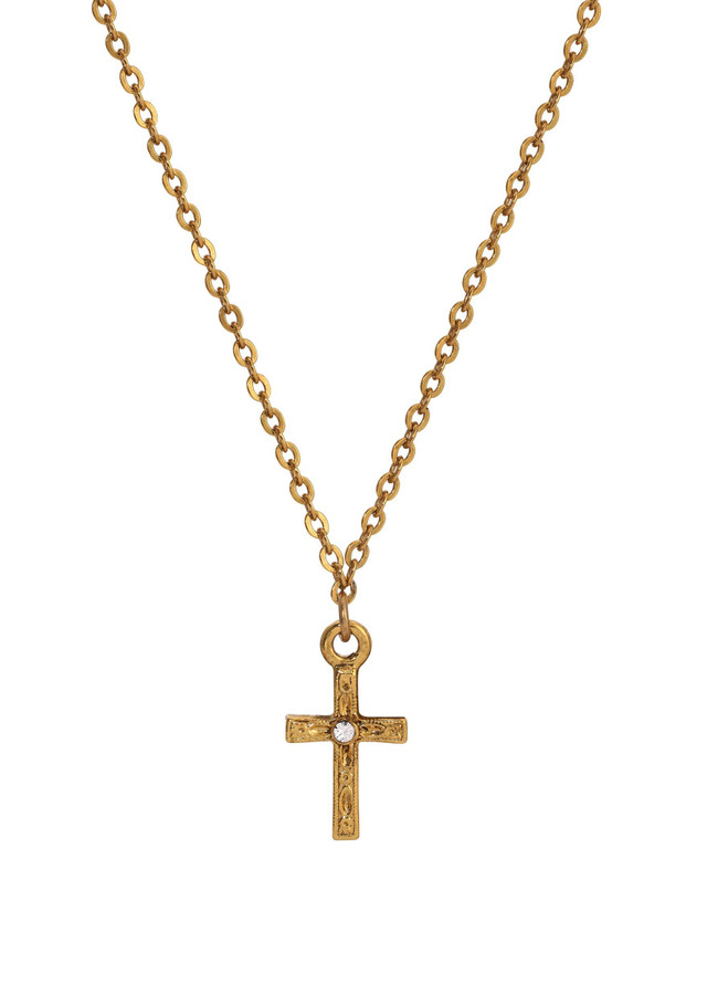 Adorn yourself with this elegant 14K gold-dipped cross necklace. Featuring traditional design elements, it is delicately accented with round clear crystals, adding a touch of sparkle. This piece exudes spiritual and feminine charm, making it perfect for special occasions. The adjustable chain ensures a comfortable fit, allowing you to wear it with any outfit. Ideal for those who appreciate timeless elegance and spiritual significance in their jewelry. Length 15 in., width 15mm.