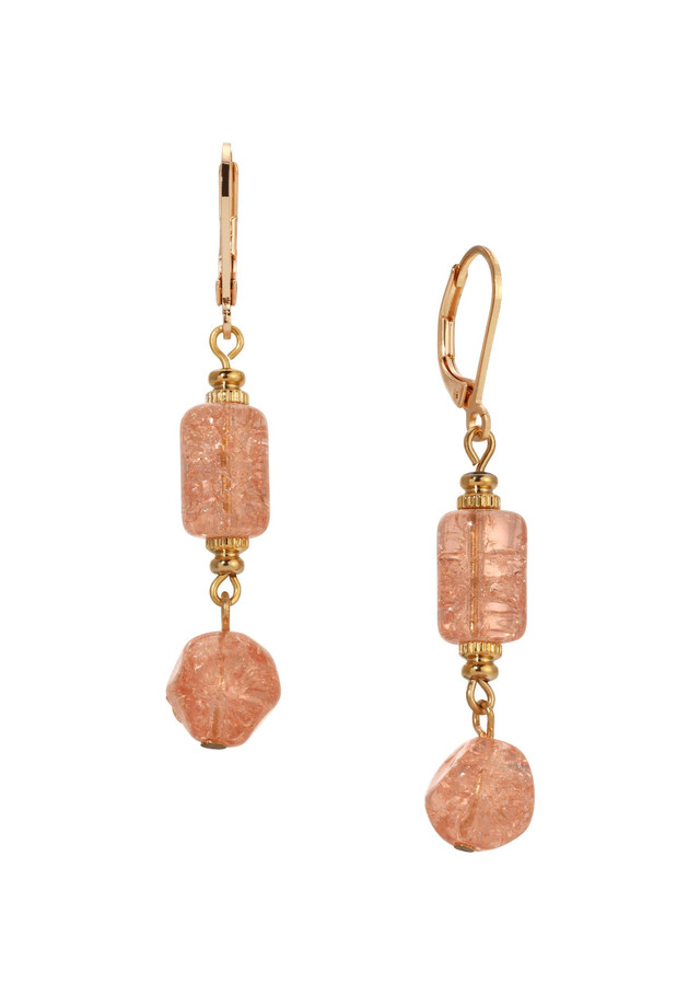 These beaded earrings feature a harmonious blend of multi-shaped glass shatter peach beads and 14k gold-dipped spacers, creating a captivating interplay of textures and tones. Each bead is meticulously selected, resulting in a unique piece that exudes elegance. Modern and eye-catching, these earrings are perfect for adding a touch of sophistication to any outfit. Length 2.15 in., width 10mm.