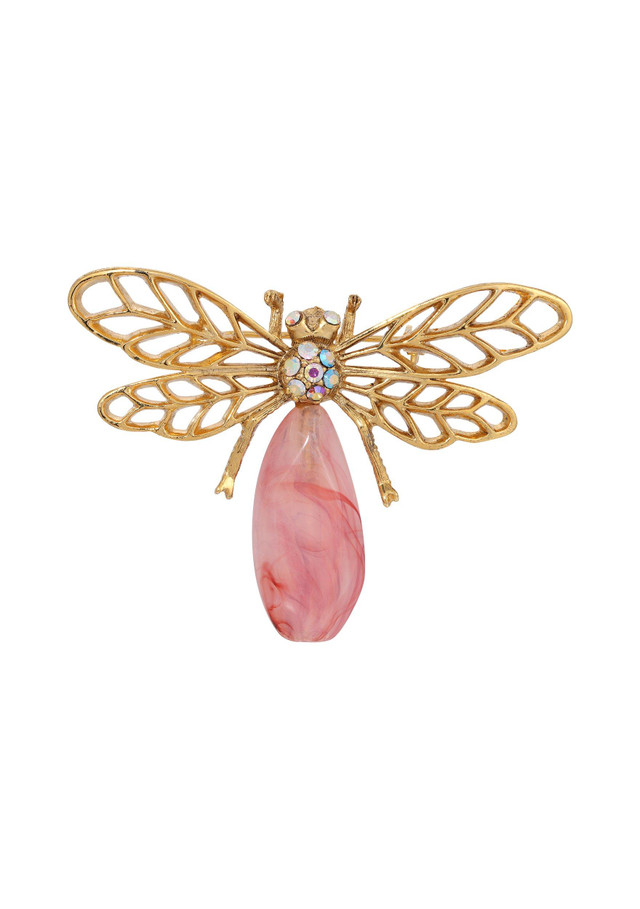 Immerse yourself in the captivating fusion of elegance and refinement with our 14k gold dipped Dragonfly Pin. This enchanting accessory features an irregular-shaped milky purple-colored bead and round Aurora Borealis crystals, evoking the mesmerizing allure of the dragonfly. Length 2.5 in., width 44mm.