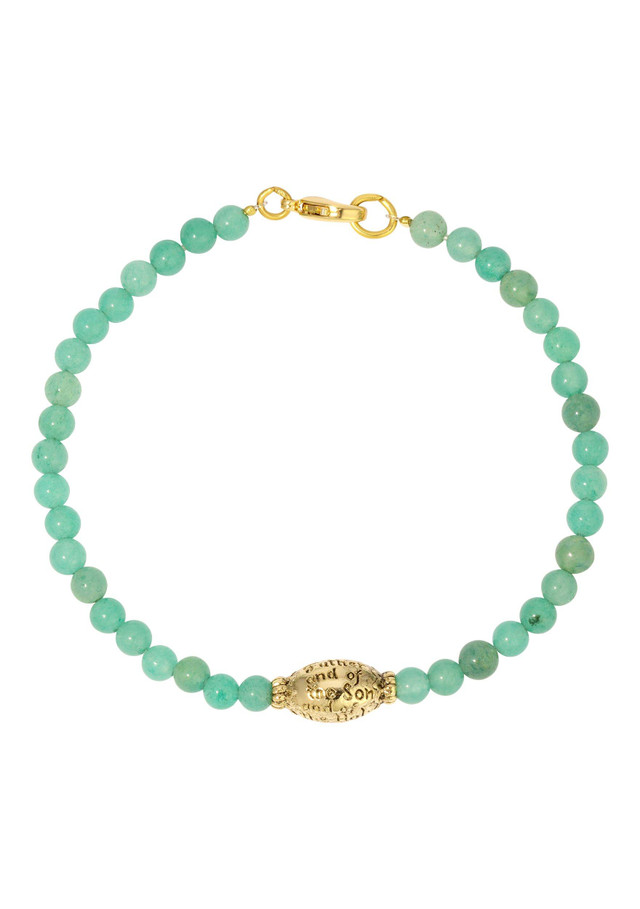 This smooth, round semi-precious beaded bracelet features a striking 14k gold-dipped bead etched with the meaningful Sign of the Cross. The subtle, polished beads are strung together for a refined yet simple design, making it a perfect addition to any collection. The gold-dipped bead adds a touch of warmth and faith to this understated piece, making it both elegant and meaningful. Ideal for those who appreciate timeless and spiritual jewelry. Length 7.5 in. Width 4mm.