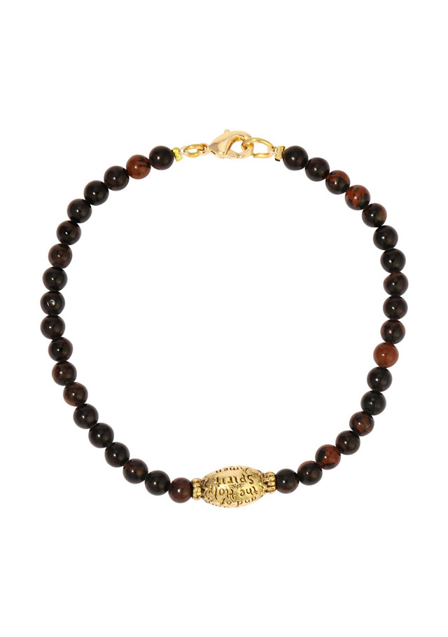 This smooth, round semi-precious beaded bracelet features a striking 14k gold-dipped bead etched with the meaningful Sign of the Cross. The subtle, polished beads are strung together for a refined yet simple design, making it a perfect addition to any collection. The gold-dipped bead adds a touch of warmth and faith to this understated piece, making it both elegant and meaningful. Ideal for those who appreciate timeless and spiritual jewelry. Length 7.5 in. Width 4mm.