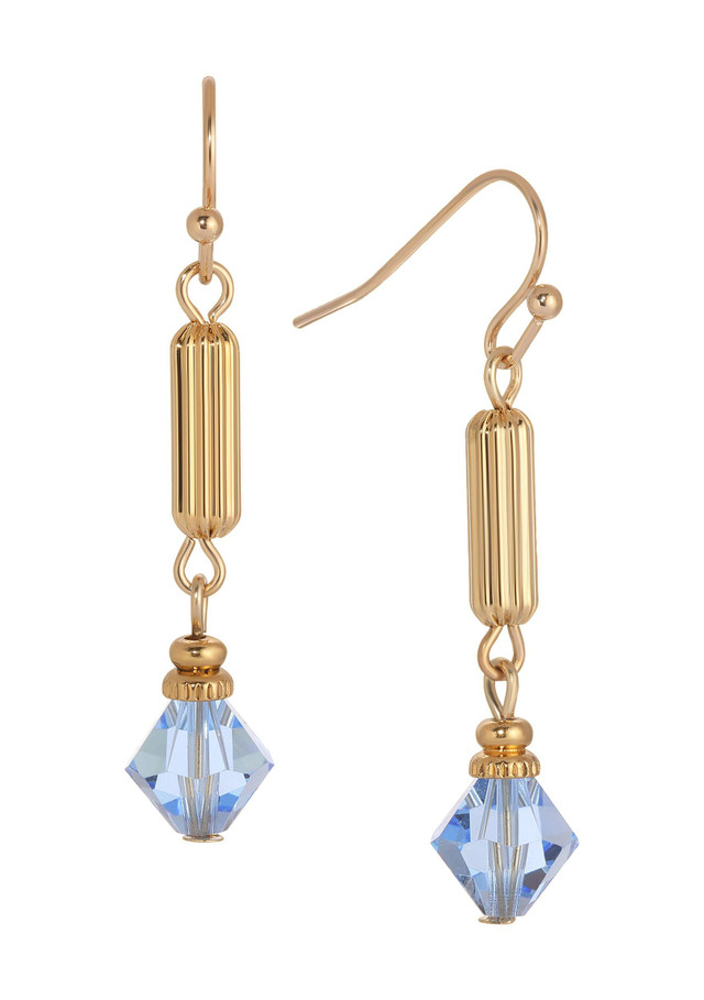 These delightful dangling earrings showcase a cylindrical 14k gold-dipped bead, elegantly suspended beneath delicate European glass lantern beads. With each movement, they offer a graceful sway, adding a touch of sophistication. Available in soft hues of light rose pink and light sapphire blue, these earrings provide a subtle pop of color, perfect for enhancing any outfit with a hint of charm and elegance. Length 1.65 in., width 8mm.