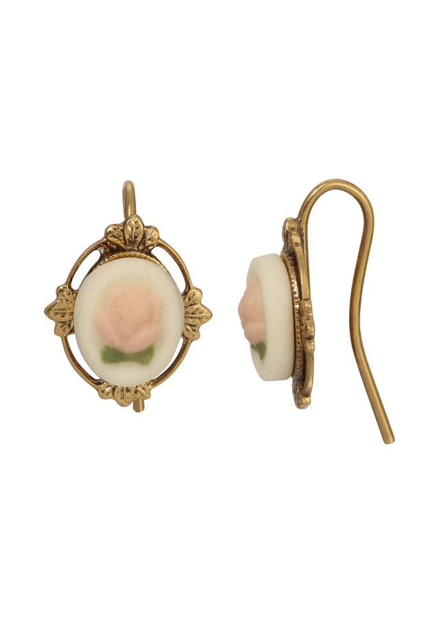 Add a touch of boho sophistication with these vintage-inspired earrings. Featuring a fishhook closure for easy wear, they showcase a 14K gold-dipped frame adorned with intricate leaf motifs. Their delicate and detailed design exudes timeless elegance, making them perfect for every occasion. Whether you're dressing up for a special event or adding a refined touch to your everyday attire, these earrings are a versatile and charming addition to your jewelry collection.Length .65 in., width 11mm.