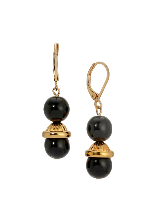 Add a flirty flash of vintage flair with these 1928 Jewelry drop earrings! Jet black and gold-tone beads dance in a chic double drop design, bringing just the right pop of drama. Finished with easy leverbacks, they are your go-to for turning headsday or night. Length 1.65 in., width 10mm.