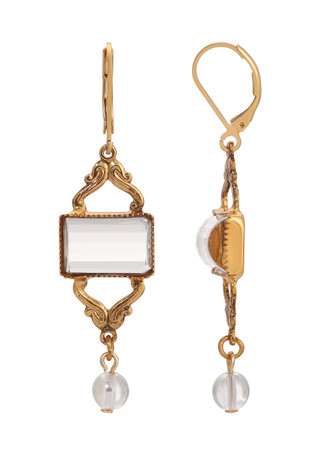 Savor the enchantment of midnight elegance with these exquisitely fashioned earrings. Intricately designed to mesmerize, they feature dazzling rectangular clear crystal stones and round AB crystals. Their graceful structure and refined allure radiate an aura of enigma and sophistication, perfect for infusing a hint of opulence into any outfit. Length 2.35 in., width 15mm.