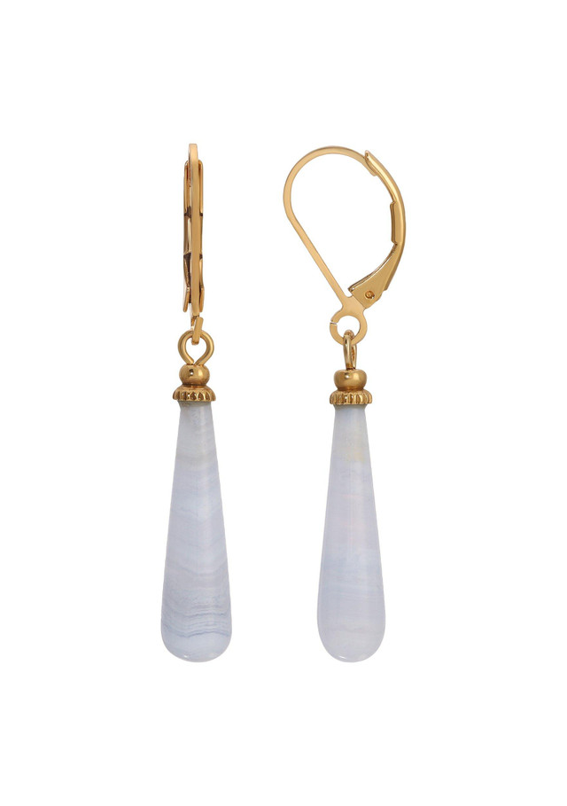 Elevate your style with our elegant and understated earrings, featuring teardrop gemstones nestled in a 14K gold-dipped setting. The rich, warm hues of gold beautifully complement the genuine gemstones, creating a linear and modern design. With a secure lever back closure, these earrings are perfect for any occasion, whether you're at work or enjoying dinner with friends. Add a touch of sophistication to your look with these versatile and timeless pieces. Length 1.8 in., width 6mm.