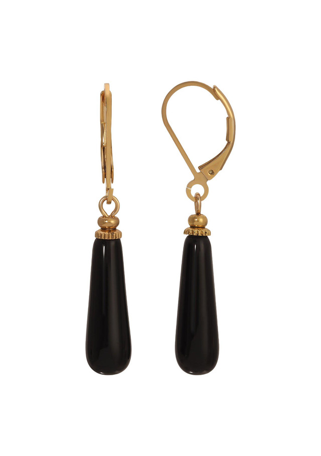 Elevate your style with our elegant and understated earrings, featuring teardrop gemstones nestled in a 14K gold-dipped setting. The rich, warm hues of gold beautifully complement the genuine gemstones, creating a linear and modern design. With a secure lever back closure, these earrings are perfect for any occasion, whether you're at work or enjoying dinner with friends. Add a touch of sophistication to your look with these versatile and timeless pieces. Length 1.8 in., width 6mm.