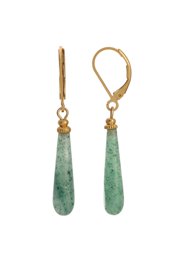 Elevate your style with our elegant and understated earrings, featuring teardrop gemstones nestled in a 14K gold-dipped setting. The rich, warm hues of gold beautifully complement the genuine gemstones, creating a linear and modern design. With a secure lever back closure, these earrings are perfect for any occasion, whether you're at work or enjoying dinner with friends. Add a touch of sophistication to your look with these versatile and timeless pieces. Length 1.8 in., width 6mm.