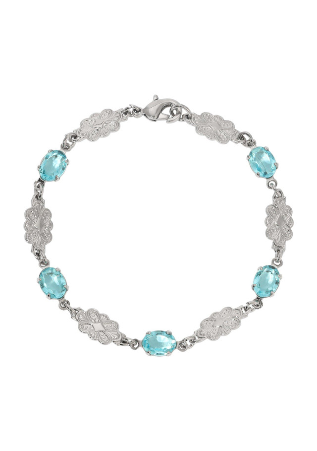 1928 Jewelry Silver Tone Aqua Stone Filigree Bracelet