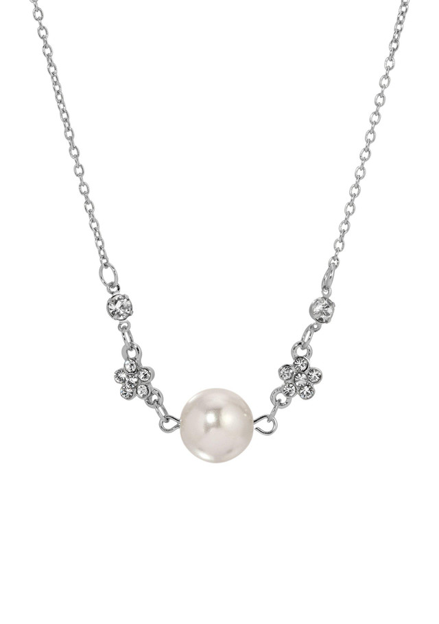 Embrace timeless romance with this 1928 Jewelry faux pearl necklace. Delicate pearls and twinkling crystals rest gently along a silver-tone collar, capturing the elegance of a bygone era. A graceful piece that whispers vintage love with every wear. Length 16 in., width 16mm.