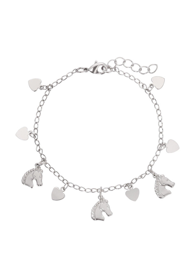 This enchanting cable chain bracelet weaves together intricate horse head charms and delicate heart motifs, beautifully encapsulating the interplay between the graceful nature of horses and the depth of heartfelt emotions. Length 6.5 in., width 14mm.