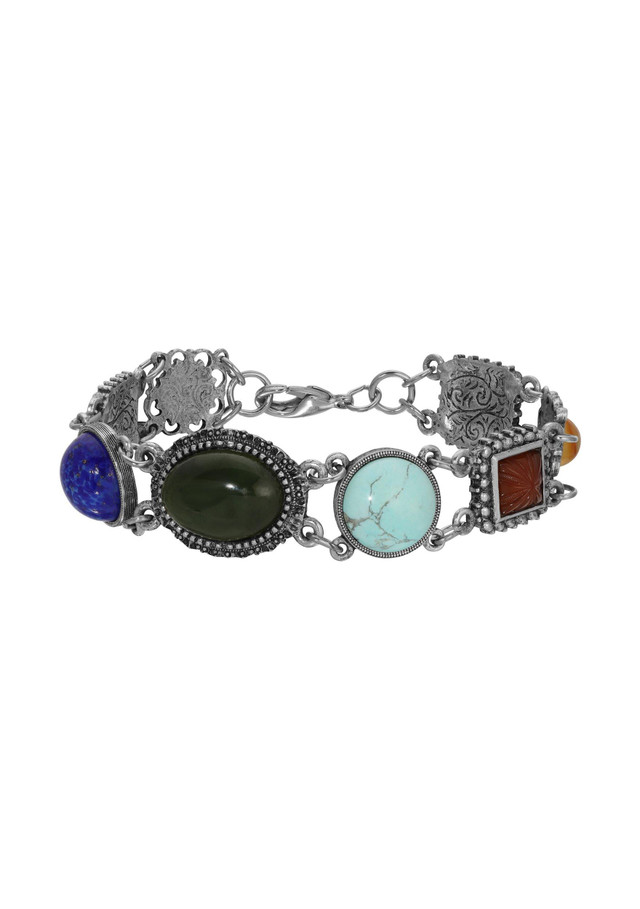 1928 Jewelry Silver Tone Mixed Color Shape Bracelet
