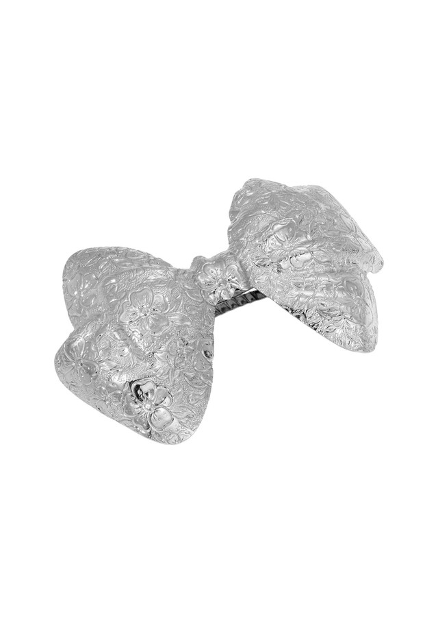 Add a touch of vintage charm with the 1928 Jewelry Small Patterned Bow Hair Barrette. This unique accessory features a delicate bow design, perfect for everyday wear or dressing up your look. Stylish and feminine, it is an easy way to elevate any hairstyle. Length 2.55 in., width 40mm.