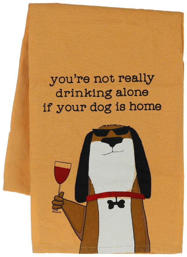 Add a splash of personality to your kitchen with this whimsical towel featuring a dog playfully holding a wine glass. Made from 100% cotton, it blends humor and charm with everyday practicality, bringing joy and a touch of canine sophistication to your cooking space.