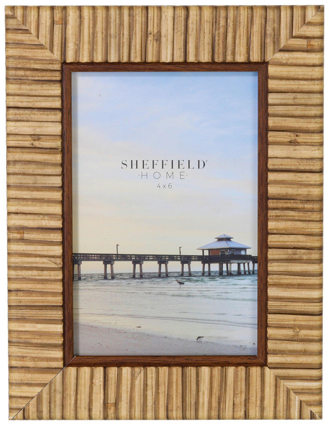 Showcase your favorite memories with this 4x6 dark rattan picture frame. Featuring a woven texture and rich finish, it adds a natural, stylish touch to any room. Perfect for tabletops, shelves, or desks, this frame blends seamlessly with coastal or rustic décor.