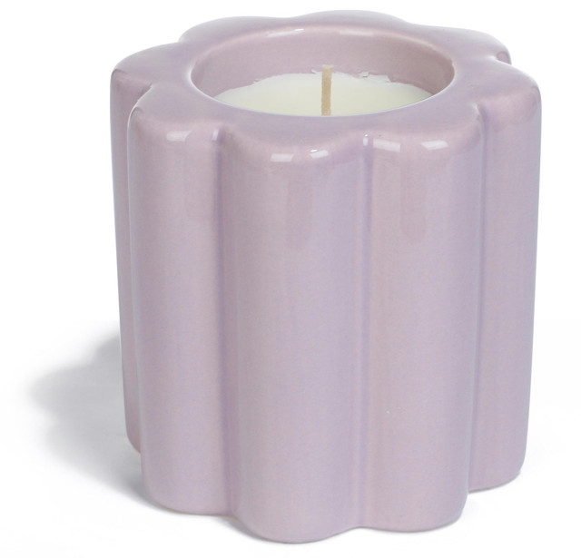 Add a playful pop of color with this charming daisy-shaped ceramic candle in soft purple. Filled with a berry-scented single-wick candle, it's the perfect blend of sweet fragrance and whimsical design ideal for gifting or brightening any room.