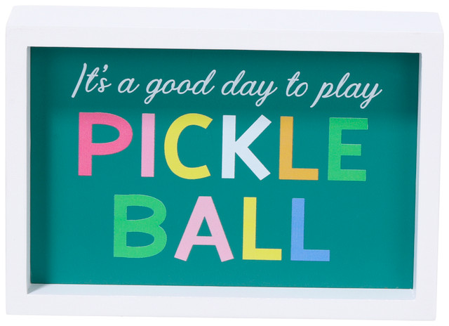 Add a playful touch to your home with this 7x5 inch framed art piece featuring the phrase Its a Good Day to Play Pickleball. Perfect for game rooms, entryways, or any space that celebrates your love for the sport. The compact size makes it easy to display on shelves, desks, or walls. A fun and sporty accent for pickleball enthusiasts.