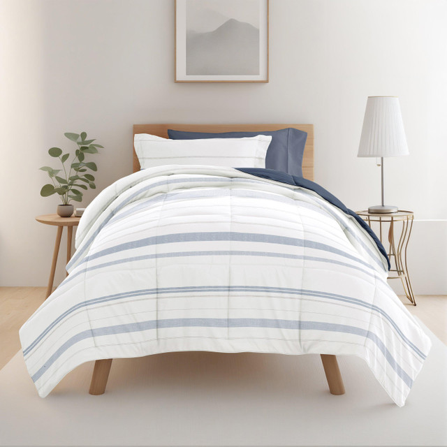 Prepare for college life with the Ultimate College Essentials Bedding Bundle. This all-in-one set features a a vibrant patterned comforter and a matching solid sheet set, both crafted from soft, durable microfiber. TwinXL - Bundle Contents and Size Guide: 1 Laundry Bag (20 x 28), 2 pillows (20 x 28), 70 x 90 Comforter, 20 x 26 Pillow Sham with 2 flange, 1 flat sheet (66 x 102), 1 fitted sheet (39 x 81 x 16) and 1 pillowcase (20 x 30). Machine Wash Cold.