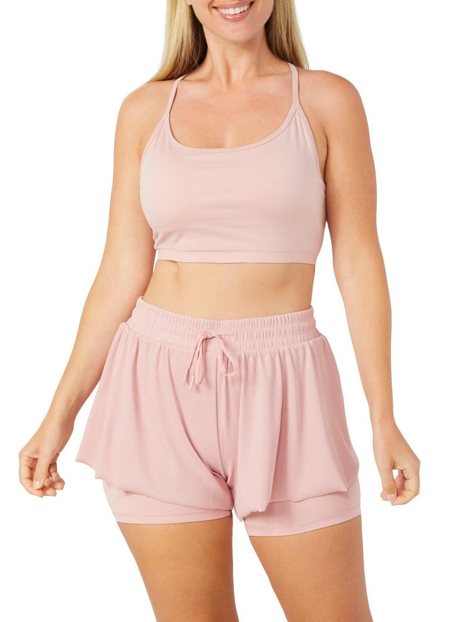 Elevate your workout style with this Women's Active 2-Piece Shorts Set. Featuring a padded sports bra and matching shorts, both in a solid color with a ribbed texture and performance stretch fabric for comfort and support. Fabrication 92% nylon, 8% spandex