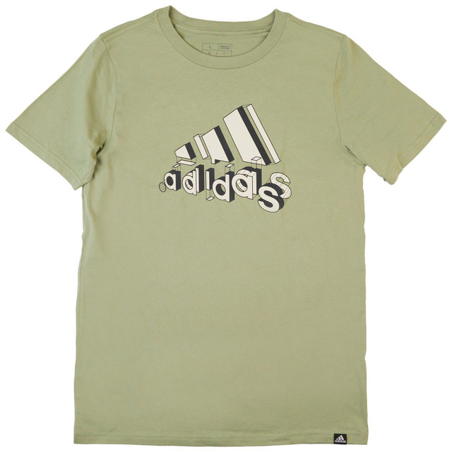 This crew neck adidas shirt is made from 100 percent cotton for a soft and breathable feel. It features short sleeves and a relaxed fit that moves with you. The front showcases a bold logo graphic that adds a sporty edge to your everyday look. Perfect for casual wear or active days, this tee delivers comfort and style in one clean design.