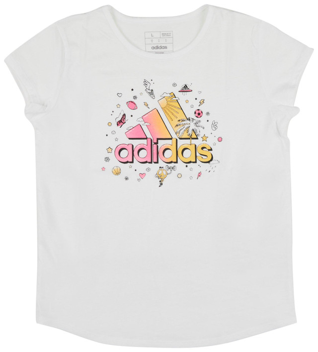 This big girls active logo tee features a bold front logo screen print, classic crew neckline, and short sleeves. Designed for comfort and style, it is perfect for everyday wear or sporty outings. Fabrication is 60% cotton, 40% polyester