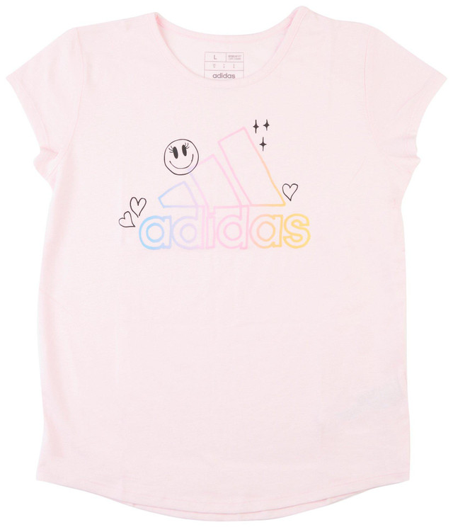 This big girls active logo tee features a bold front logo screen print, classic crew neckline, and short sleeves. Designed for comfort and style, it is perfect for everyday wear or sporty outings. Fabrication is 60% cotton, 40% polyester