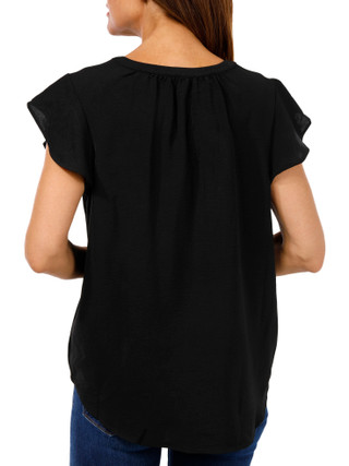 Adrianna Papell Womens Short Sleeve Solid Flutter Top