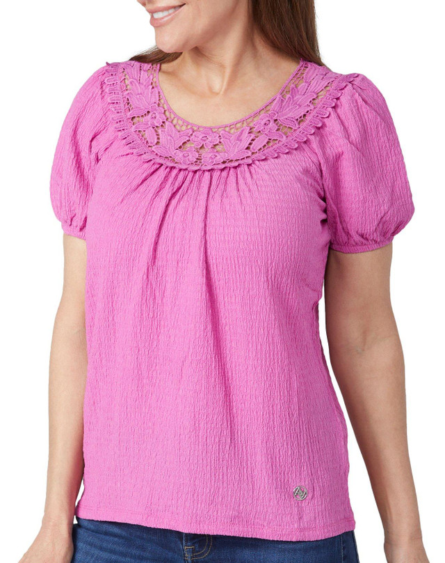 Adrienne VittadiniAdrienne Vittadini Petite Short Sleeve Crochet Trim Top