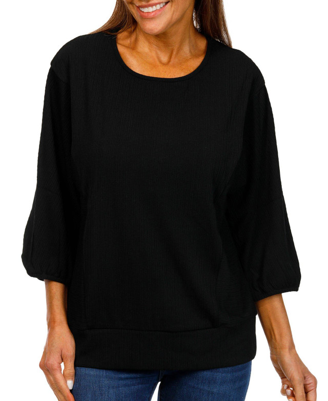 Own the day in this womens dolman sleeve top designed for comfort and polish. The round neckline keeps it classic, while the quarter-length dolman sleeveswith added underarm fabriccreate a relaxed, flattering drape that moves with you. Made for busy mornings and boardroom confidence, this top pairs effortlessly with trousers or skirts. Easy to wear, hard to ignore.