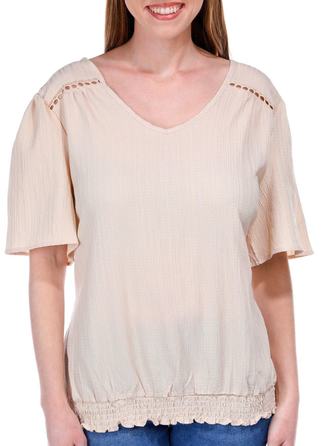 Adrienne Vittadini Womens Textured Short Sleeve Crinkle Top