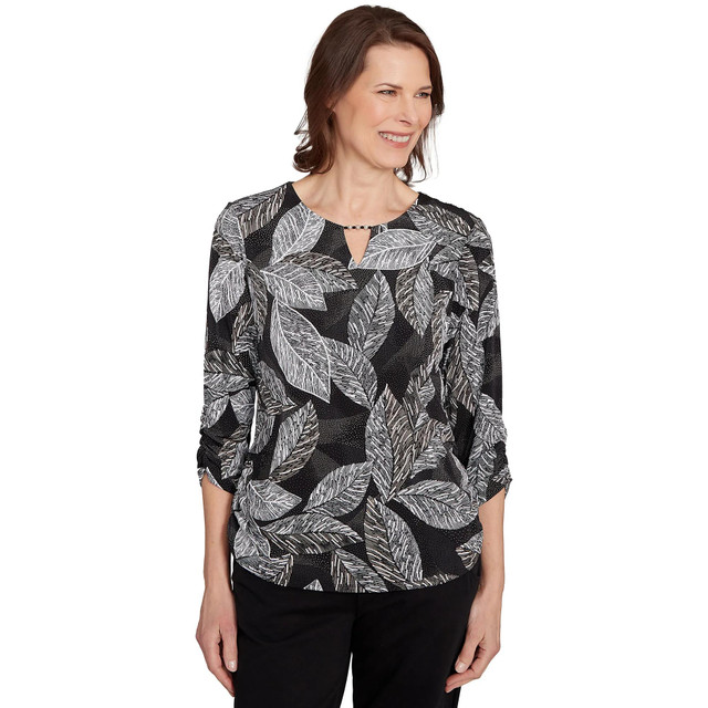 Alfred Dunner Petite 3Q Sleeve Puff Print Leaf Top