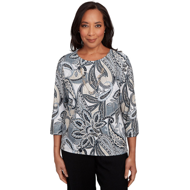 Alfred Dunner Womens 3/4 Sleeve Reversible Paisley Top