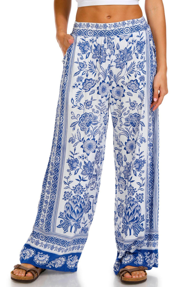 These pants feature a bold print pattern and a comfortable elastic waist for an easy fit. Lightweight and relaxed, they're perfect for casual days or laid back outings.