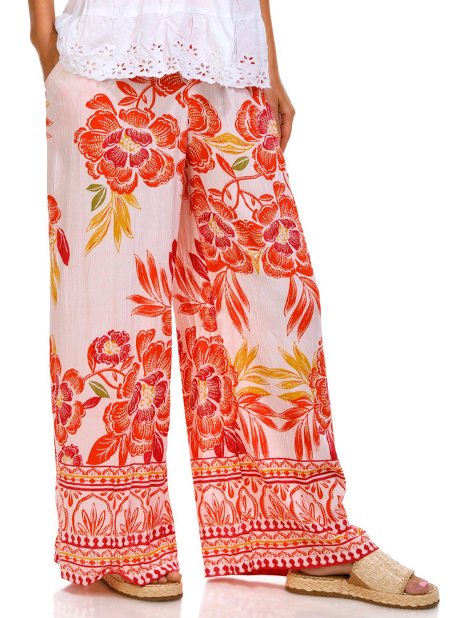 Introducing the Juniors Floral Border Print Pants, crafted from 100% rayon for a lightweight and comfortable fit. These stylish pants feature a pull-on waistband for easy wear and a wide-leg fit that offers both elegance and freedom of movement. The vibrant floral border design adds a touch of sophistication, making these pants perfect for any casual or semi-formal occasion. Embrace effortless style with this versatile piece.