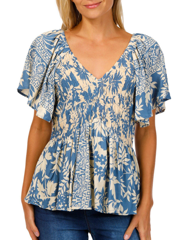 Introducing the Juniors Short Sleeve Smocked Babydoll Floral Top, crafted from 100% rayon for a lightweight and breathable feel. This stylish top features a vibrant floral design and a flattering v-neckline with smocking detail. The babydoll shape and short flowing sleeves add a touch of elegance, making it perfect for casual or dressy occasions. Combining comfort and style effortlessly, this top is a versatile addition to any junior's wardrobe.