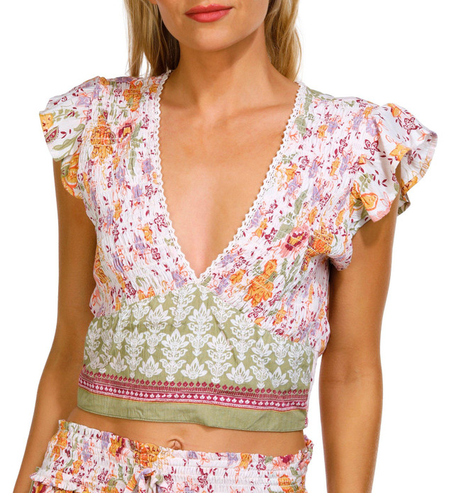 Introducing the Juniors Short Sleeve Smocked Ruffle Sleeve Top, crafted from 100% rayon for a soft and breathable feel. This stylish top features a vibrant floral print and a flattering v-neckline. The smocked back ensures a comfortable fit, while the short ruffle sleeves add a touch of elegance. With a 17-inch length, this top is perfect for casual outings or dressing up.