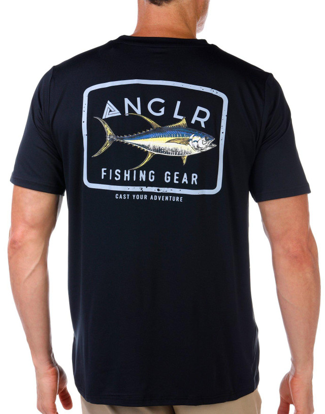 Gear up for the outdoors with the Men's Fishing Gear Performance T-Shirt. Crafted from breathable, lightweight fabric, it features a classic crew neckline and short sleeves for all-day comfort. Built-in reel block sun protection keeps you covered during long days on the water. Fabrication 95% polyester, 5% spandex
