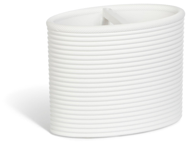 Upgrade your bathroom with this sophisticated toothbrush holder, designed with ridged sides for a modern touch. Crafted from durable resin, it offers both style and functionality while complementing a clean, minimalist aesthetic. Its sleek white finish blends seamlessly with various decors, making it a perfect addition to any bathroom space.