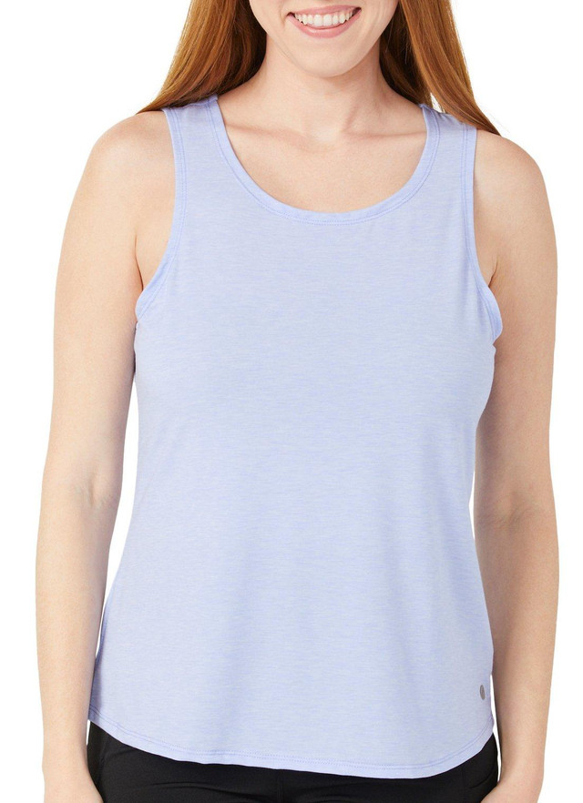 The Womens Active Levitate Keyhole Back Tank Top features a heathered exterior and a round neckline for a clean, modern look. The back keyhole design adds breathability and style, while the performance stretch fabric ensures comfort and flexibility for any activity. Fabrication 72% polyester, 19% lyocell, 9% spandex.