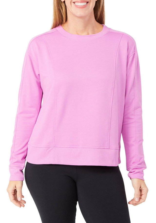Stay sleek and comfortable in the Women's Active Long Sleeve Transcend Top. Featuring a solid color, long sleeves, and a classic crew neckline, this versatile piece is perfect for layering or wearing solo during workouts, errands, or relaxed days. Fabrication 73% polyester, 22% rayon, 5% spandex